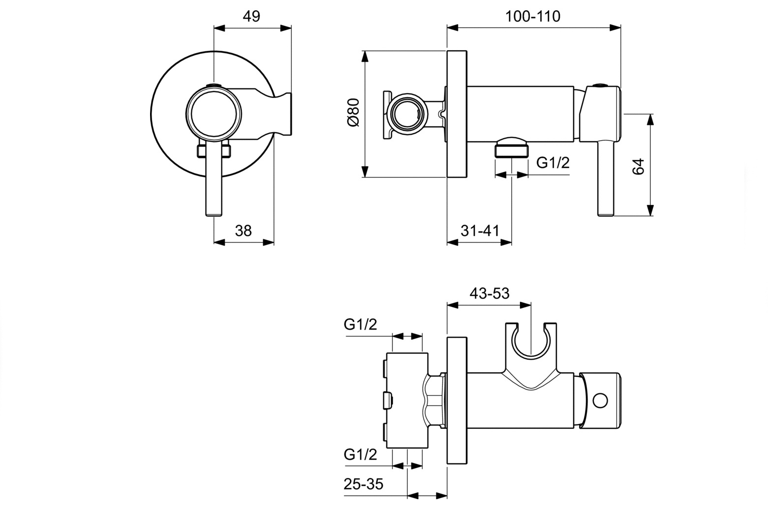 - Външен извод за смесената вода G1/2
