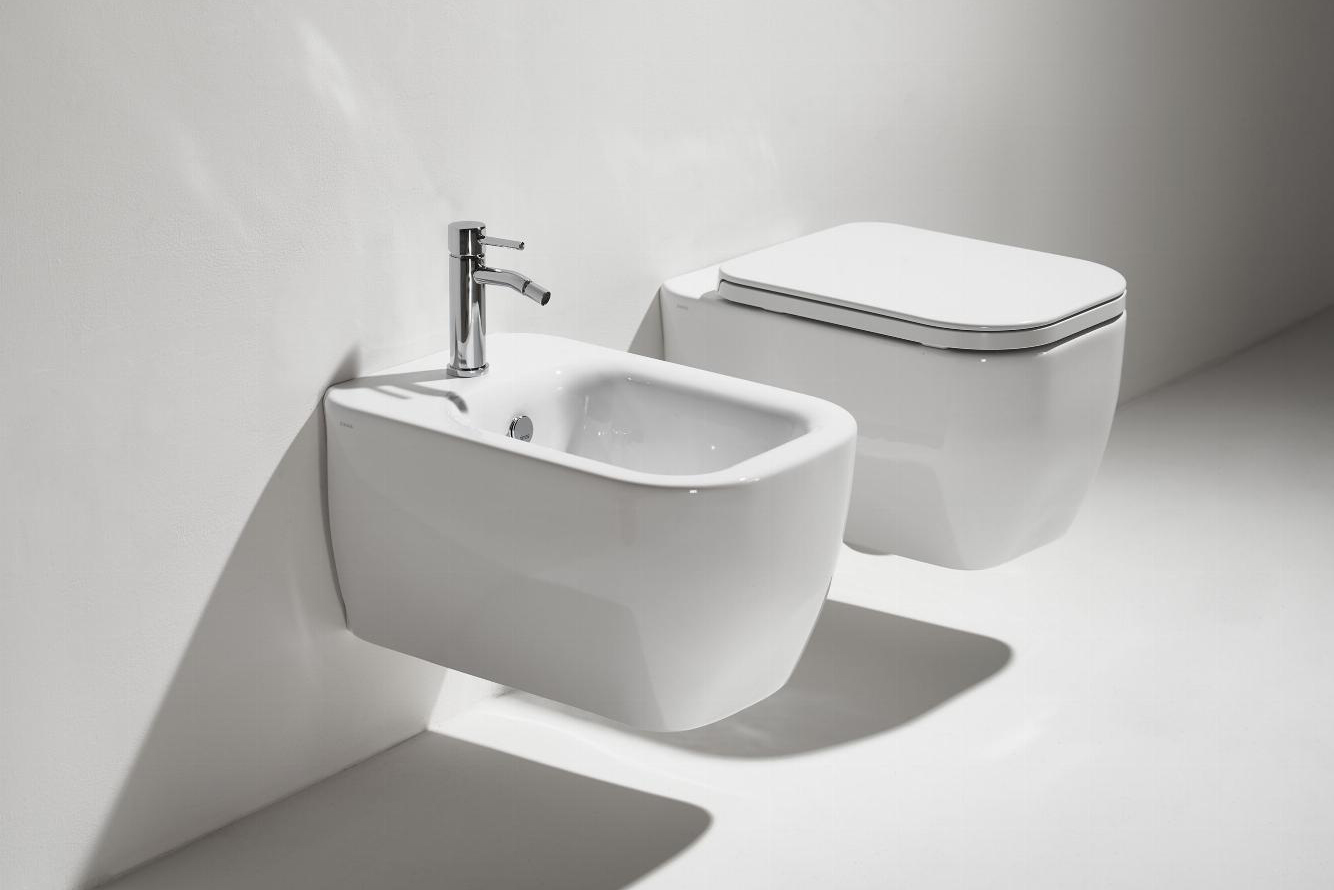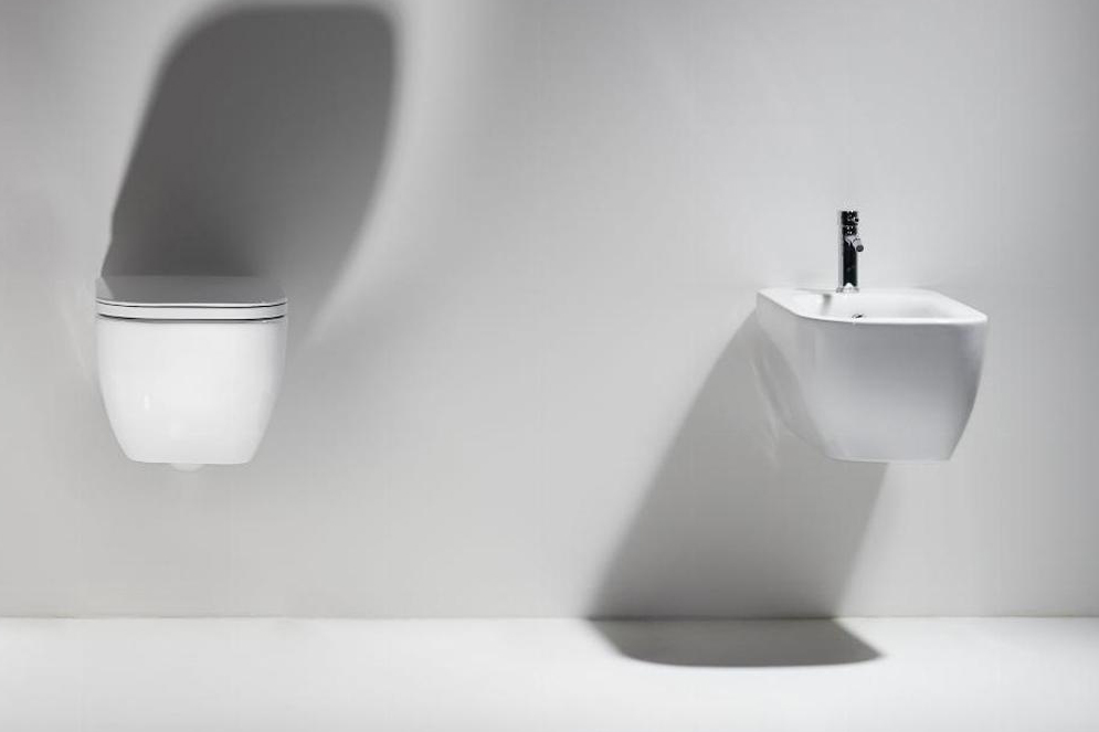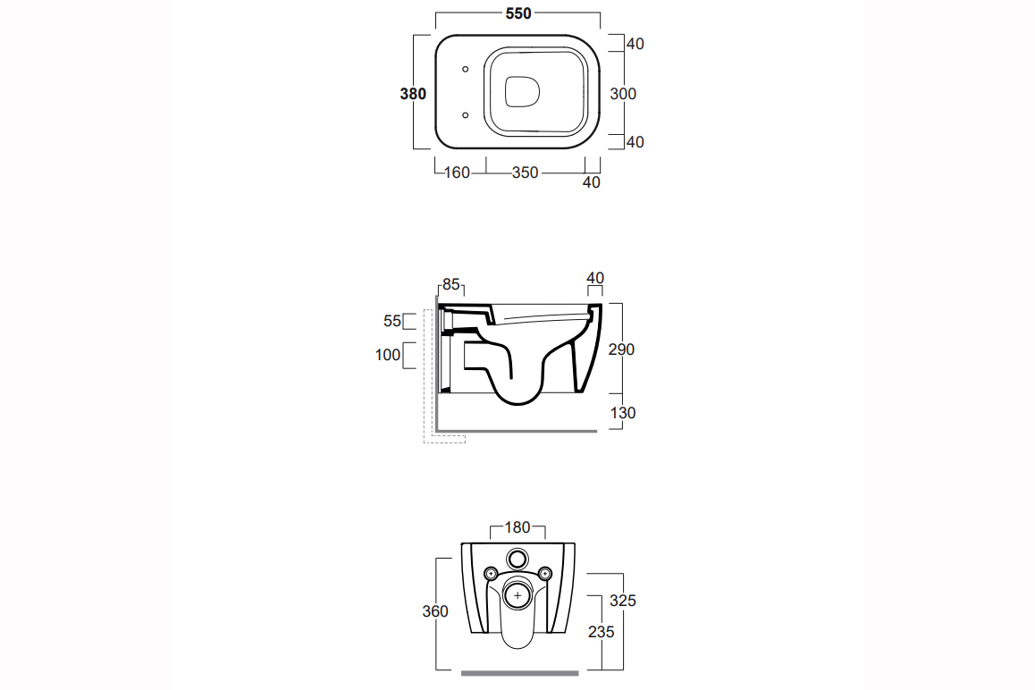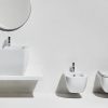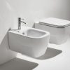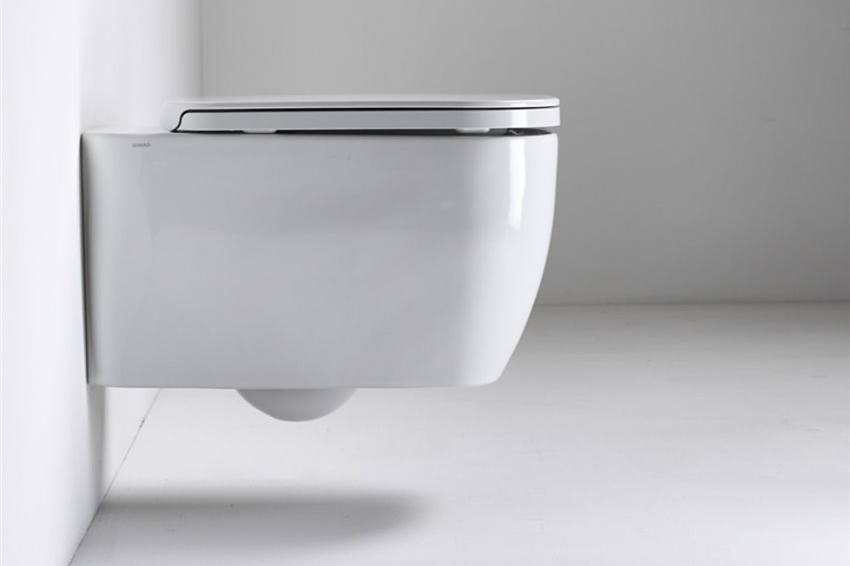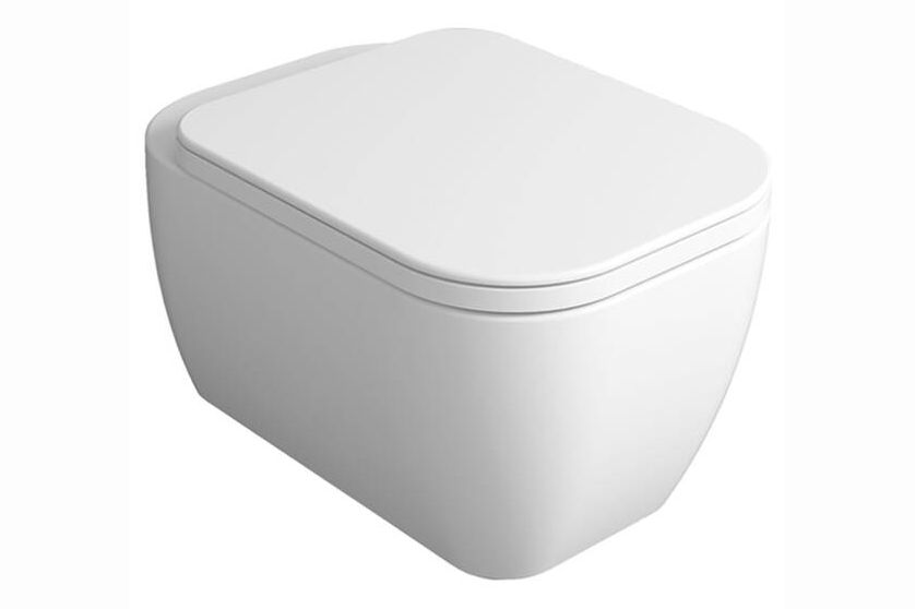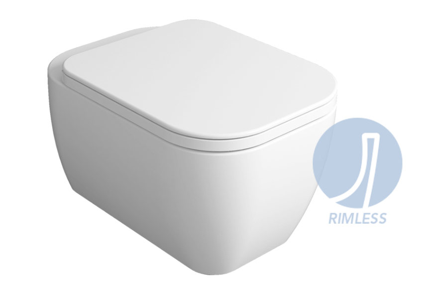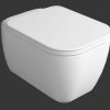 Конзолна тоалетна чиния Henges с „Rimless“ технология. Комплект с монтажен комплект F85 и със седалка и капак с плавно затваряне HE 004.