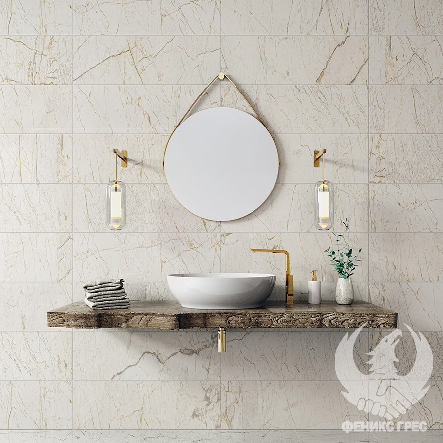 Плочки за баня ASTORIA Brown са чудесен фон на аксесоари, вдъхновени от природата – плот от дърво, зелени растения, акценти в благородно злато. Резултатът е топла и уютна атмосфера!