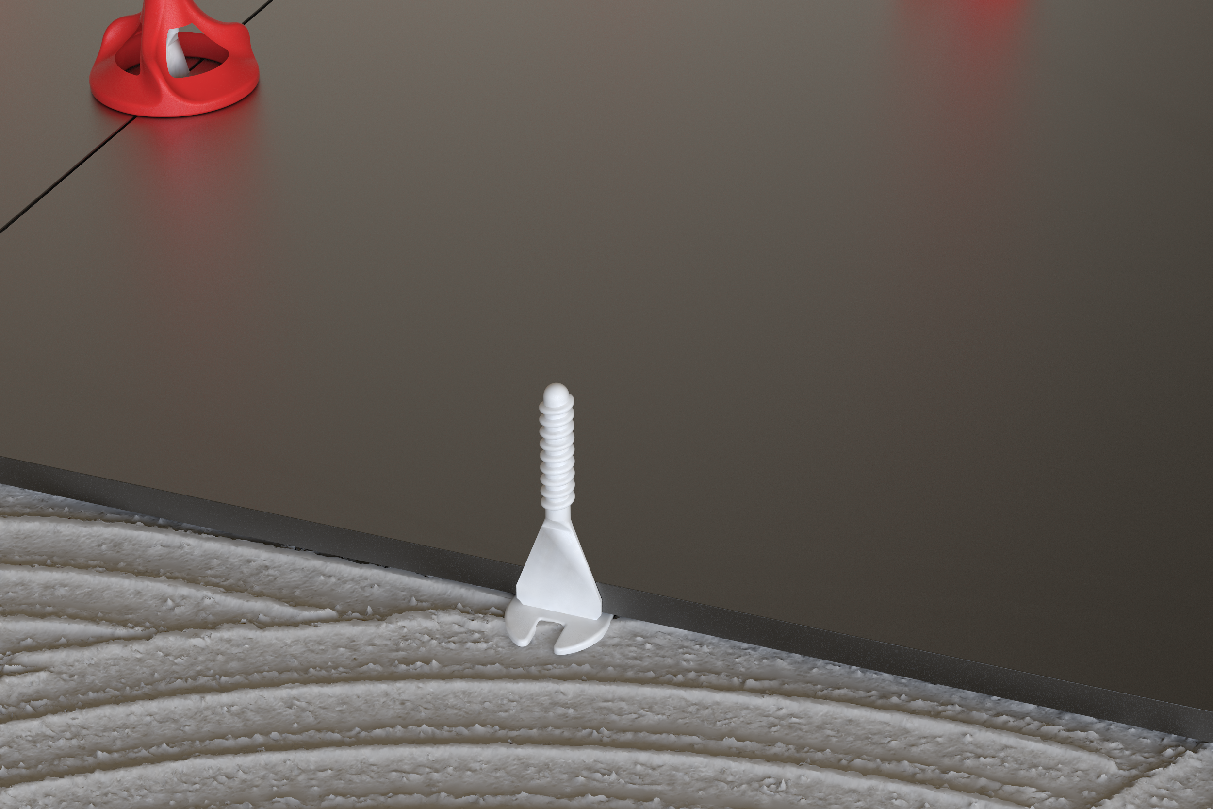 Тази система позволява едновременно регулиране на нивото и фуговата междина, което я прави по-ефективна в сравнение с традиционните решения. Дистанционерите с винт 2 мм са консумативи, докато пристягащата гайка може да се използва многократно, като за разлика от други нивелиращи системи може да се затегне ръчно, без да се използват клещи.