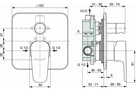 Смесител за вграждане за вана и душ