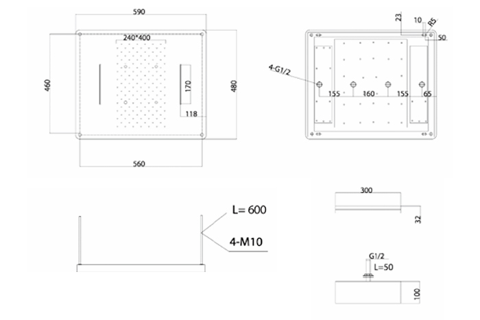 Душ пита с три каскади за монтаж на таван