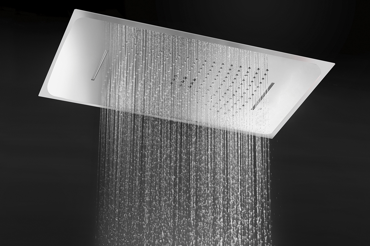 Душ пита с три каскади за монтаж на таван с плосък дизайн и със система против котлен камък.