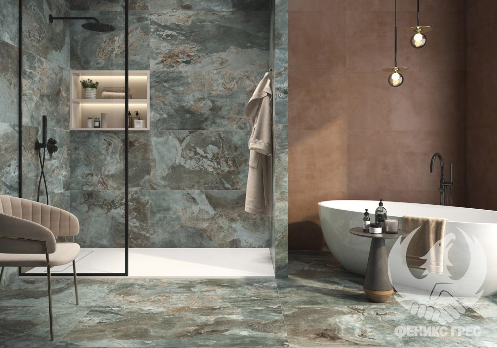 Гранитогрес ELEGANZA е чудесно решение за хора, които харесват елегантните спокойни пространства. Пастелно синьо в съчетание с бежови листенца – очарователна комбинация с модерен дух. Идеални не само за банята, но и за всяко друго пространство в интериора.