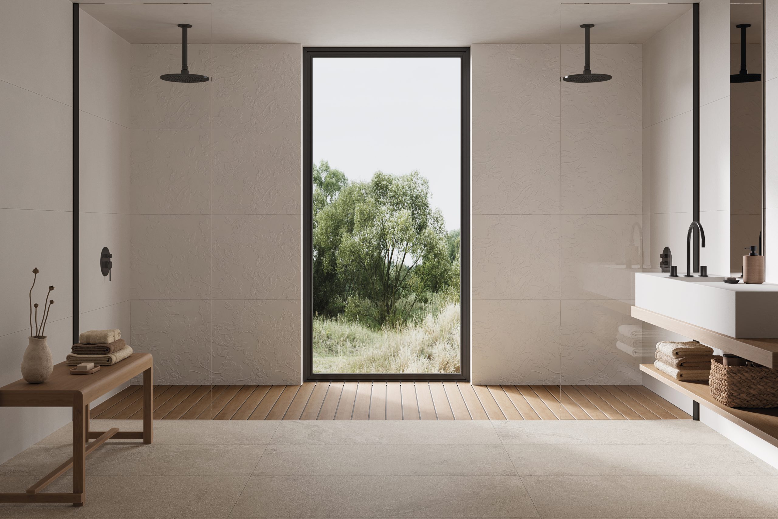 Флоралният декор Eclat добавя артистичен и изтънчен детайл, докато основата на колекцията е с античен релеф, който добавя текстура и дълбочина. Колекцията Glow превръща пространствата в оазиси на елегантност и спокойствие, съчетавайки функционалност и естетика в перфектна хармония.