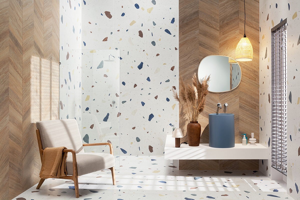 Един десен – два формата. Топлината на дървото, представена в цялото си изящество чрез матиран калиброван гранитогрес HASS BROWN MAT!