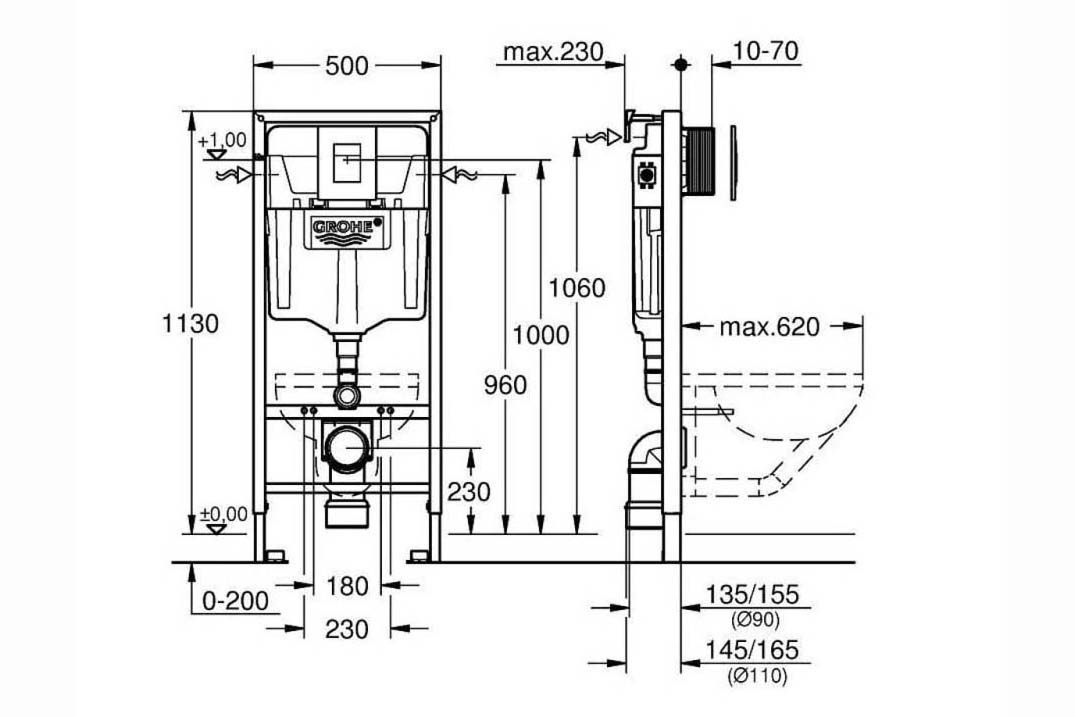 • Странично или задно водоподаване