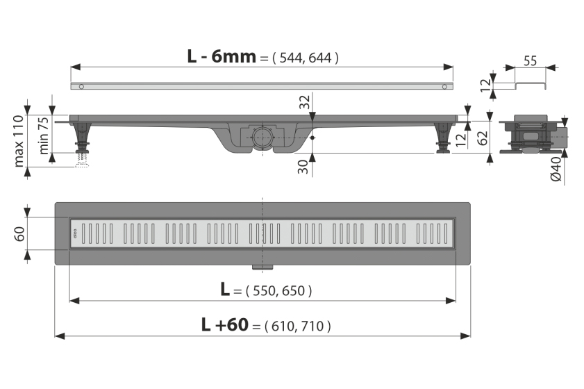 Линеен подов сифон 65см Drops CHUDEJ