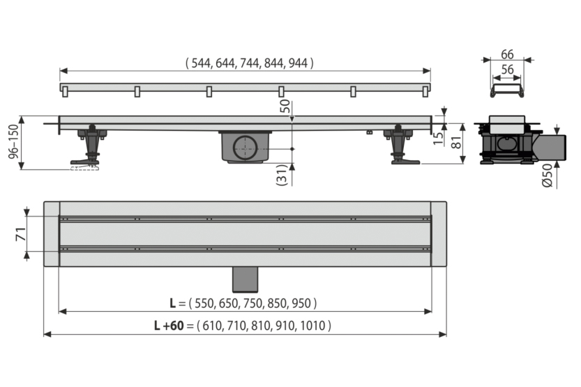 Линеен подов сифон 65см Drops CHUDEJ