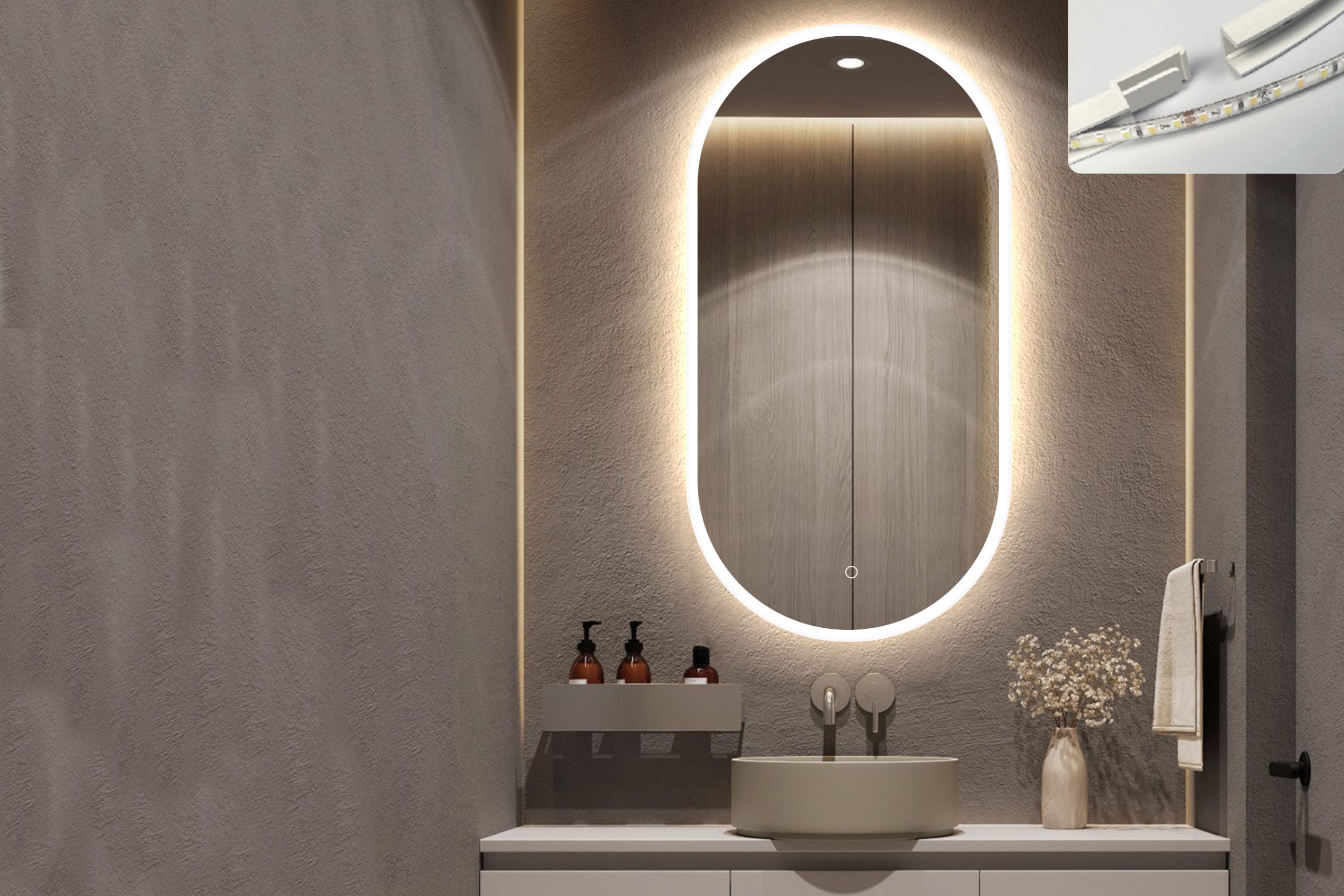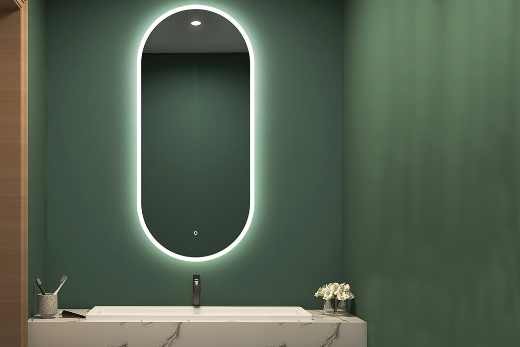 Семпло, но елегантно LED огледало за баня. LED точките са скрити, което добавя меко докосване към светлината. Перфектен избор за огледало за почитатели на простотата и минимализма.