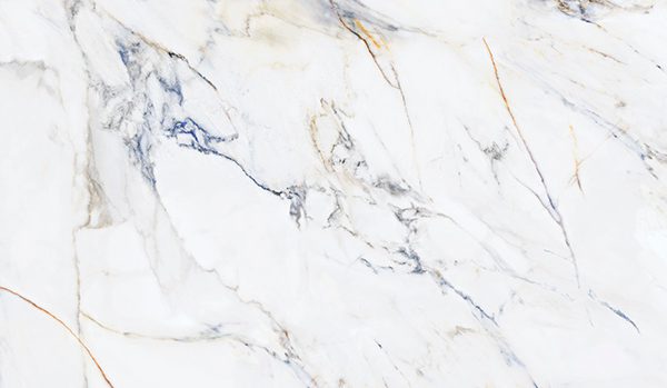 Сини воали, които нежно се спускат върху белия мрамор.