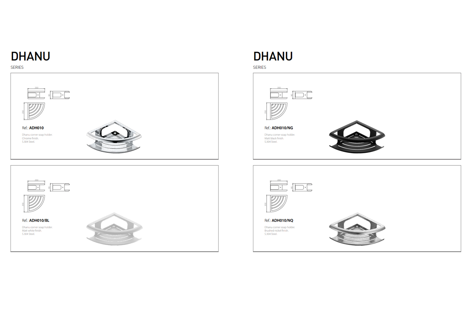 Поставка Dhanu от неръждаема стомана S.304 в 4 цвята.