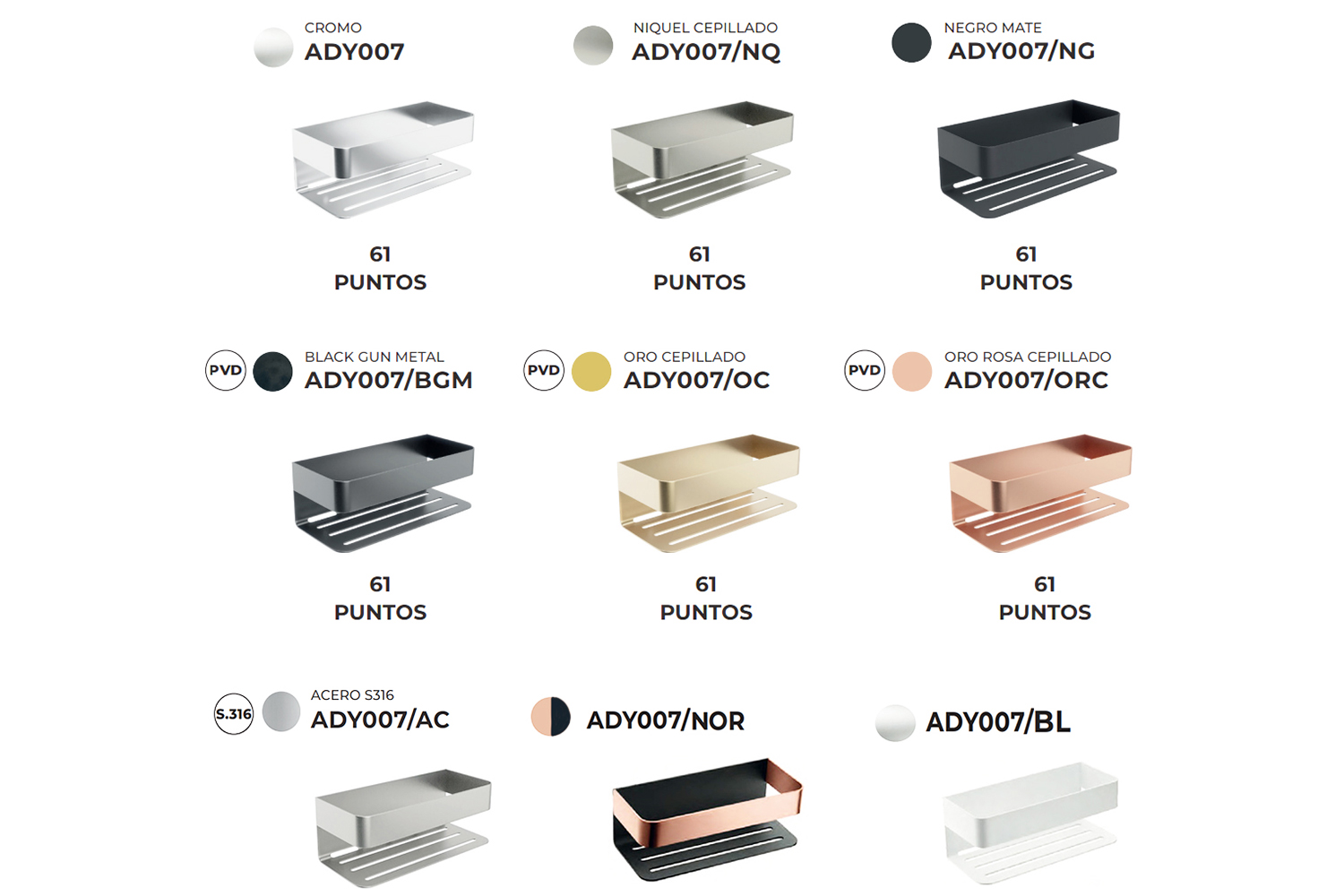 Поставка Mayura от неръждаема стомана S.304 в 8 цвята и в неръждаема стомана S.316 (със специална устойчивост на корозия) за цвят Acero.