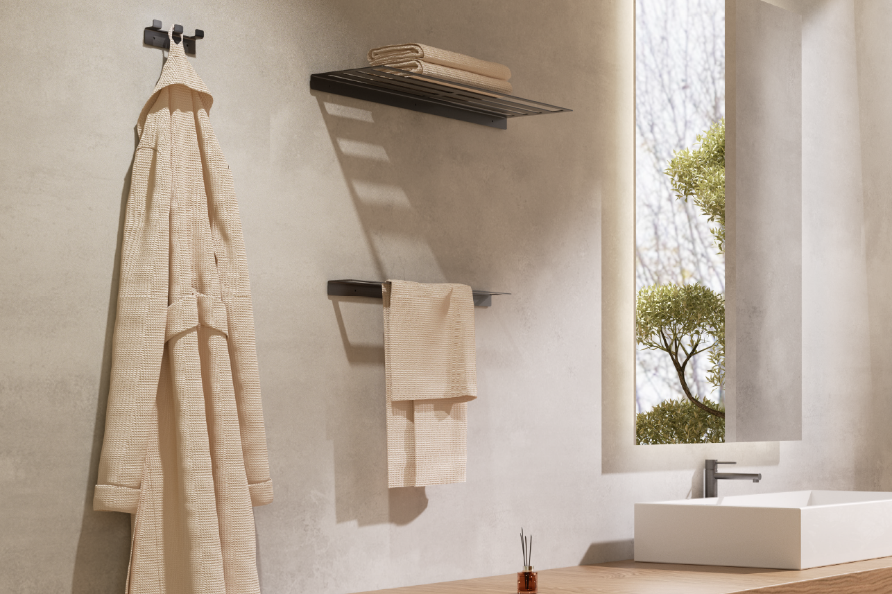 Рафт за кърпи серия Form, отличаваща се с прави линии и прецизна геометрия, внасяща модерна и функционална естетика в банята. Изработена от неръждаема стомана S.304 и се предлага в 6 цвята.
