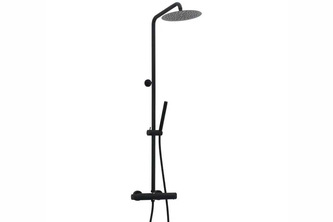 Термостатна душ колона KIT/TS60 в бял или черен мат. Душ пита с Ø25см и душ слушалка с една функция.
